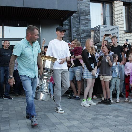Чемпион КХЛ привез главный трофей лиги на встречу с болельщиками во дворе Волга Life резиденций, где каждый смог сделать уникальное фото.