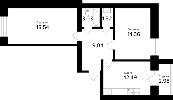 Новая 2-комнатная квартира в ЖК Норские резиденции на 2 этаже площадью 60.47 м² в 1 подъезде номер 8