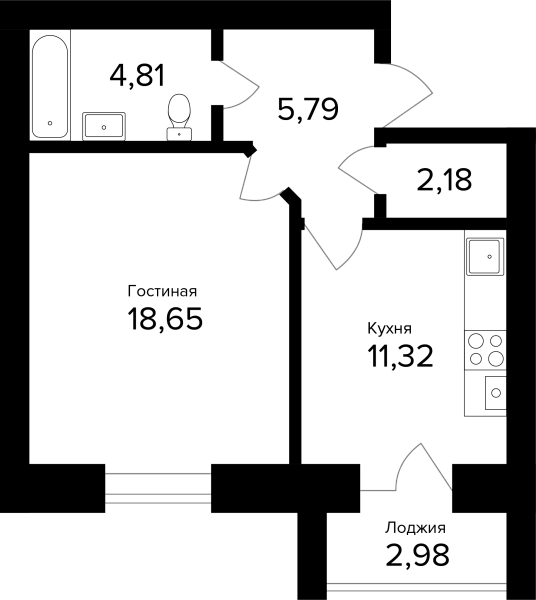 Новая 1-комнатная квартира в ЖК Норские резиденции на 2 этаже площадью 44.24 м² в 2 подъезде номер 30