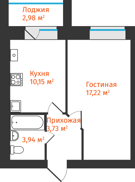 1-комнатная, 36.53м²