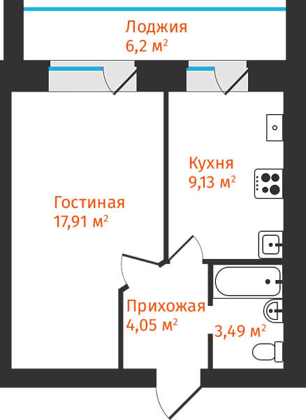 Новая 1-комнатная квартира в ЖК Норские резиденции на 5 этаже площадью 37.68 м² в 3 подъезде номер 58