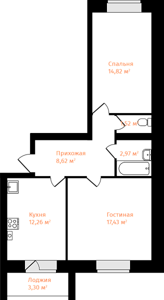 2-комнатная, 59.27м²