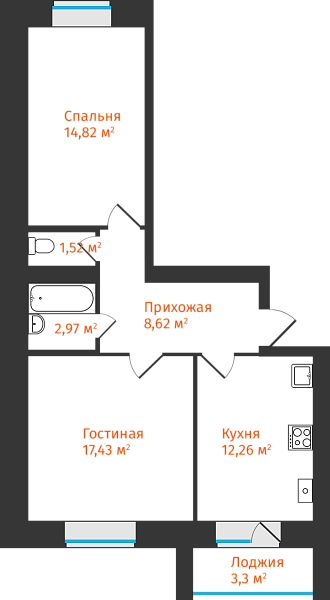 Новая 2-комнатная квартира в ЖК Норские резиденции на 5 этаже площадью 59.27 м² в 1 подъезде номер 17