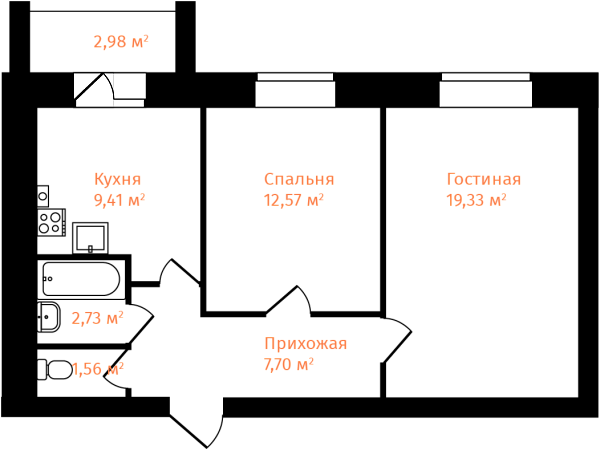 Новая 2-комнатная квартира в ЖК Норские резиденции на 2 этаже площадью 54.12 м² в 1 подъезде номер 9