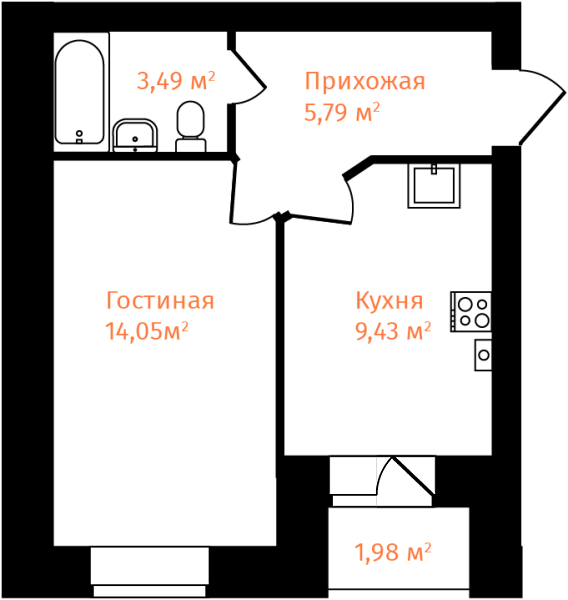 Новая 1-комнатная квартира в ЖК Норские резиденции на 5 этаже площадью 33.75 м² в 1 подъезде номер 22