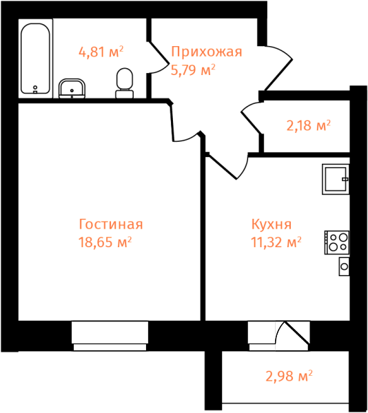 Новая 1-комнатная квартира в ЖК Норские резиденции на 5 этаже площадью 44.24 м² в 2 подъезде номер 42