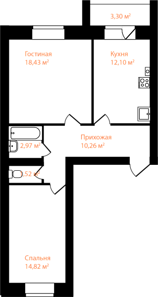 Новая 2-комнатная квартира в ЖК Норские резиденции на 1 этаже площадью 61.75 м² в 2 подъезде номер 17