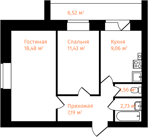 Новая 2-комнатная квартира в ЖК Норские резиденции на 3 этаже площадью 53.71 м² в 1 подъезде номер 8