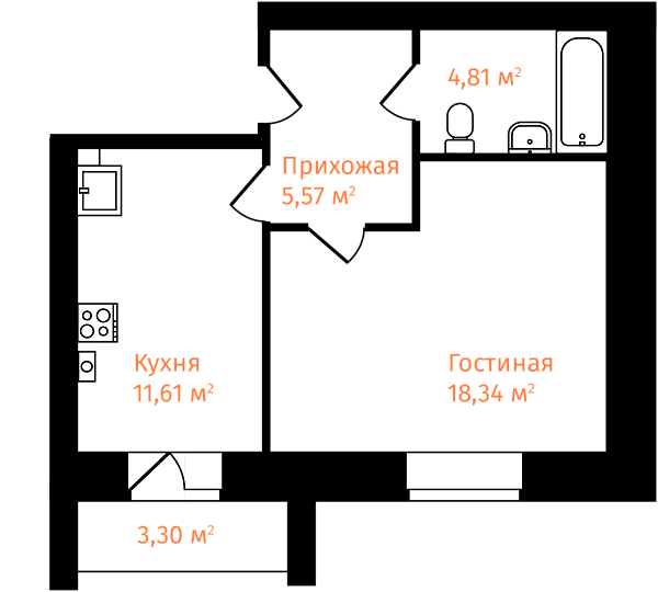 Новая 1-комнатная квартира в ЖК Норские резиденции на 5 этаже площадью 41.98 м² в 4 подъезде номер 60