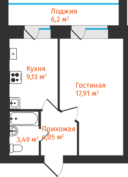 Новая 1-комнатная квартира в ЖК Норские резиденции на 1 этаже площадью 37.68 м² в 3 подъезде номер 43