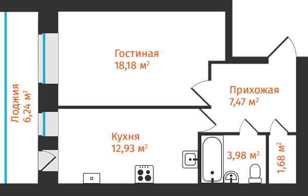 Новая 1-комнатная квартира в ЖК Норские резиденции на 5 этаже площадью 47.36 м² в 2 подъезде номер 37