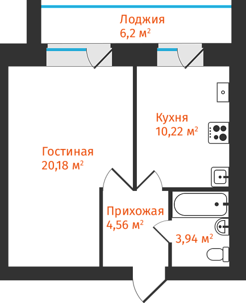 Новая 1-комнатная квартира в ЖК Норские резиденции на 5 этаже площадью 42.00 м² в 4 подъезде номер 78