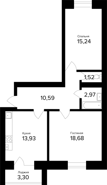 Новая 2-комнатная квартира в ЖК Норские резиденции на 2 этаже площадью 64.58 м² в 2 подъезде номер 26