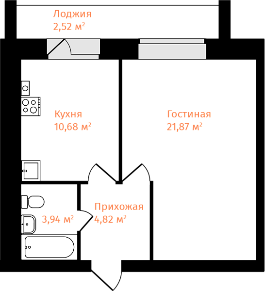 Новая 1-комнатная квартира в ЖК Норские резиденции на 1 этаже площадью 44.57 м² в 2 подъезде номер 22