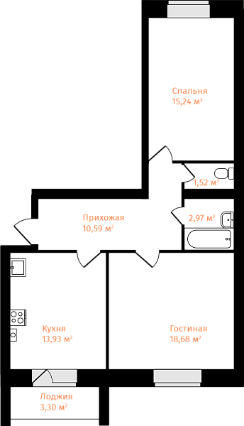 2-комнатная, 64.58м²
