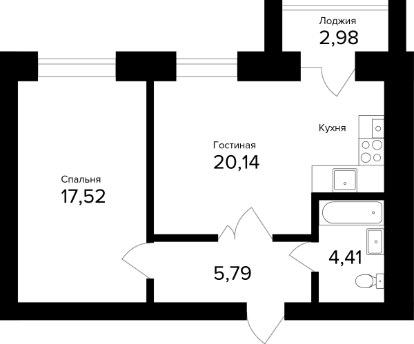 Новая 2-комнатная квартира в ЖК Норские резиденции на 5 этаже площадью 49.35 м² в 2 подъезде номер 43