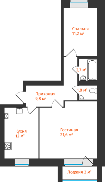 2-комнатная, 60.69м²