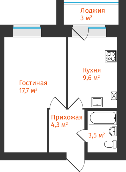 Новая 1-комнатная квартира в ЖК Норские резиденции на 1 этаже площадью 36.57 м² в 2 подъезде номер 18