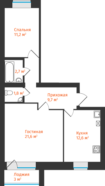 2-комнатная, 61.17м²
