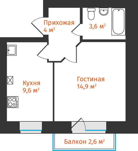Новая 1-комнатная квартира в ЖК Норские резиденции на 2 этаже площадью 33.98 м² в 3 подъезде номер 36