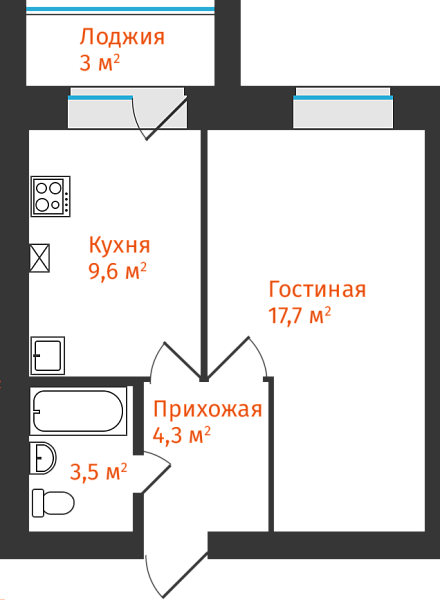 Новая 1-комнатная квартира в ЖК Норские резиденции на 4 этаже площадью 36.57 м² в 2 подъезде номер 31