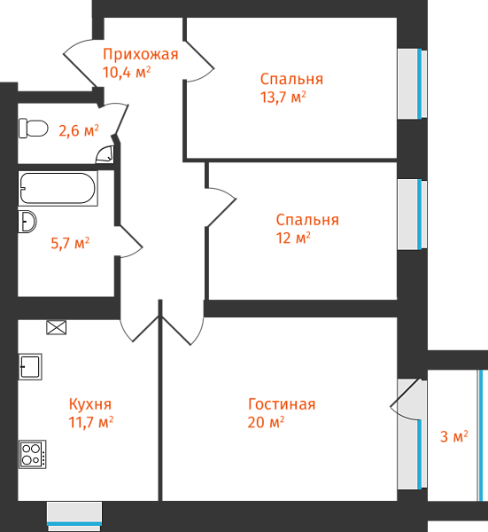 Новая 3-комнатная квартира в ЖК Норские резиденции на 1 этаже площадью 77.81 м² в 4 подъезде номер 52
