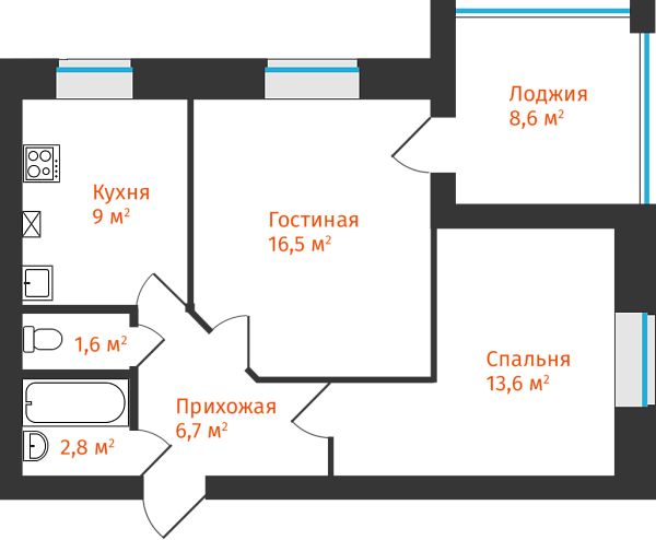 Новая 2-комнатная квартира в ЖК Норские резиденции на 1 этаже площадью 54.49 м² в 4 подъезде номер 39