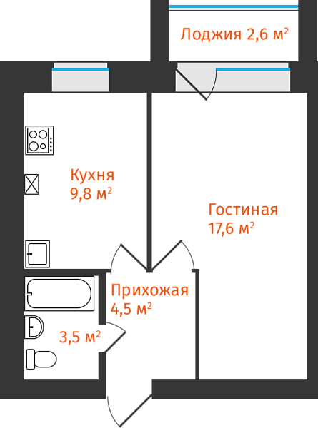 Новая 1-комнатная квартира в ЖК Норские резиденции на 1 этаже площадью 36.87 м² в 1 подъезде номер 3