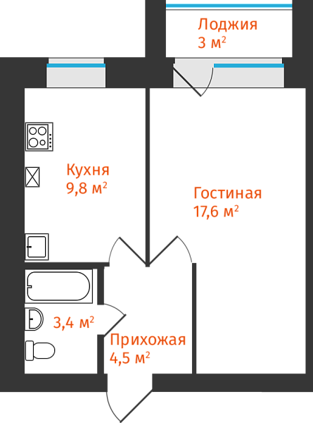 Новая 1-комнатная квартира в ЖК Норские резиденции на 2 этаже площадью 36.81 м² в 2 подъезде номер 19