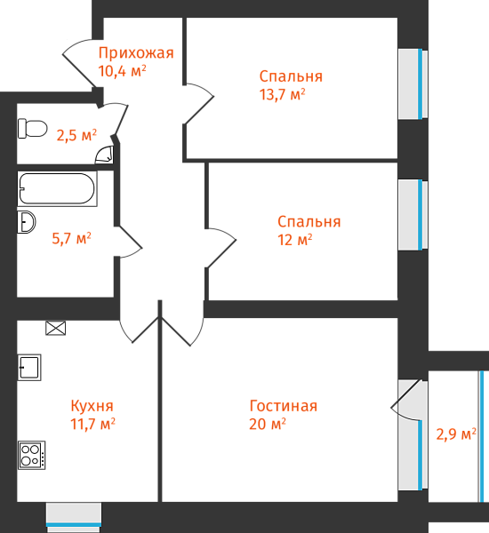 Новая 3-комнатная квартира в ЖК Норские резиденции на 2 этаже площадью 77.72 м² в 4 подъезде номер 44