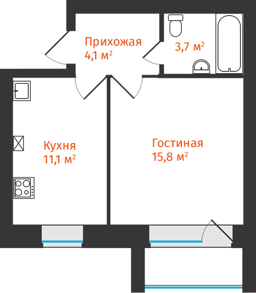 Новая 1-комнатная квартира в ЖК Норские резиденции на 2 этаже площадью 36.30 м² в 2 подъезде номер 24