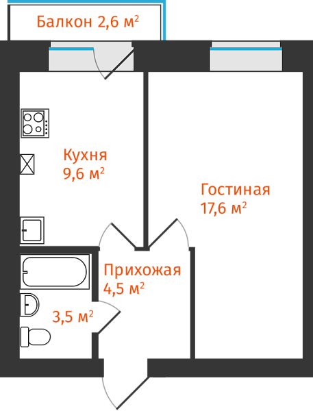 Новая 1-комнатная квартира в ЖК Норские резиденции на 3 этаже площадью 35.82 м² в 2 подъезде номер 27