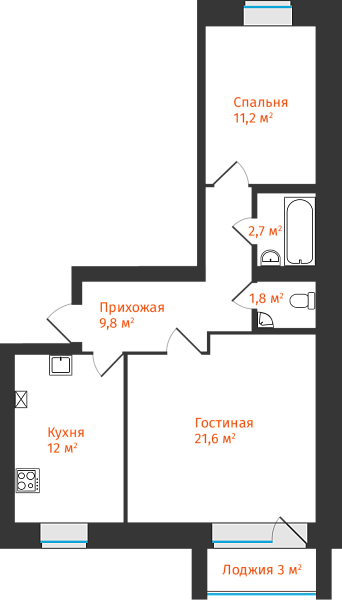 Новая 2-комнатная квартира в ЖК Норские резиденции на 1 этаже площадью 60.69 м² в 1 подъезде номер 4