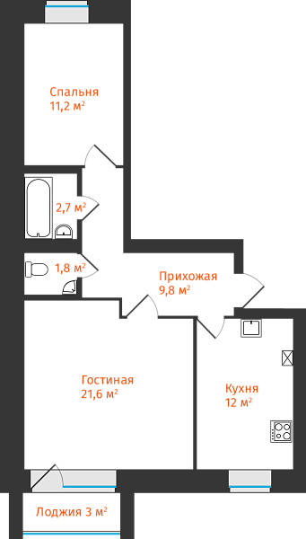 2-комнатная, 60.69м²
