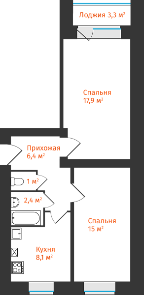 Новая 2-комнатная квартира в ЖК Норские резиденции на 1 этаже площадью 52.40 м² в 2 подъезде номер 18