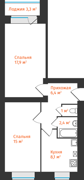 Новая 2-комнатная квартира в ЖК Норские резиденции на 2 этаже площадью 52.40 м² в 2 подъезде номер 21