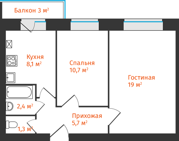 Новая 2-комнатная квартира в ЖК Норские резиденции на 4 этаже площадью 48.00 м² в 2 подъезде номер 38