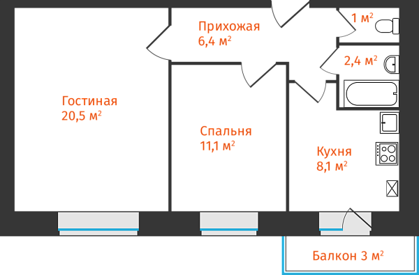 Новая 2-комнатная квартира в ЖК Норские резиденции на 4 этаже площадью 50.71 м² в 2 подъезде номер 40