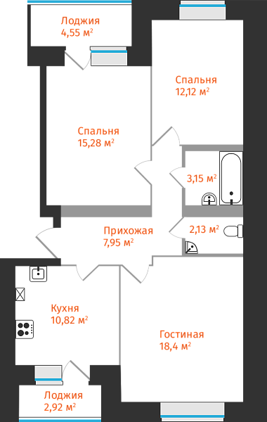 Новая 3-комнатная квартира в ЖК Норские резиденции на 1 этаже площадью 73.56 м² в 2 подъезде номер 15
