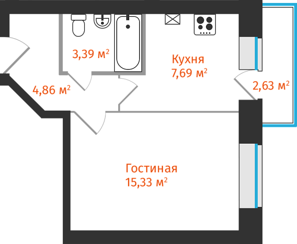 1-комнатная, 32.06м²