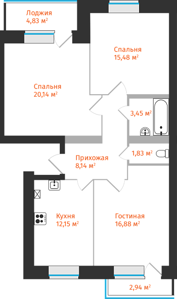 Новая 3-комнатная квартира в ЖК Норские резиденции на 3 этаже площадью 77.87 м² в 3 подъезде номер 30