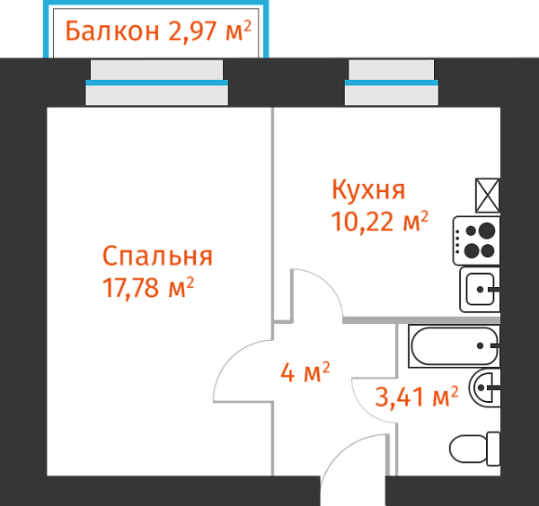 Новая 1-комнатная квартира в ЖК Норские резиденции на 3 этаже площадью 36.24 м² в 1 подъезде номер 12