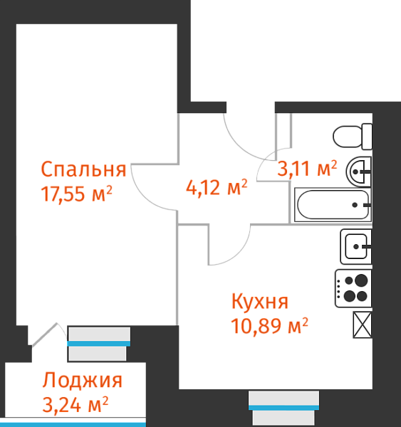Новая 1-комнатная квартира в ЖК Норские резиденции на 2 этаже площадью 36.64 м² в 2 подъезде номер 26
