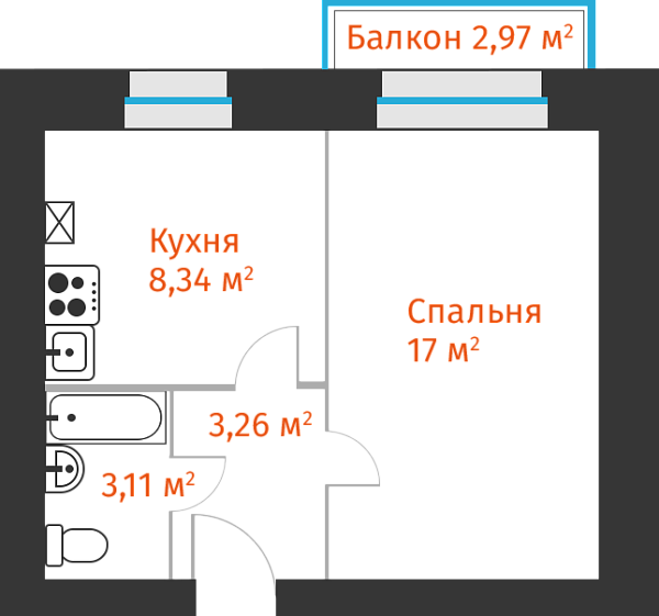 Новая 1-комнатная квартира в ЖК Норские резиденции на 2 этаже площадью 36.24 м² в 2 подъезде номер 29