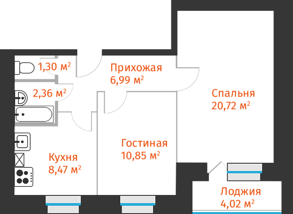 Новая 2-комнатная квартира в ЖК Норские резиденции на 4 этаже площадью 52.70 м² в 2 подъезде номер 40