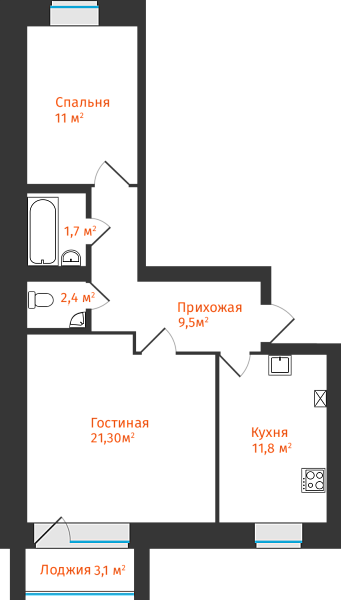 Новая 2-комнатная квартира в ЖК Норские резиденции на 4 этаже площадью 59.20 м² в 1 подъезде номер 13