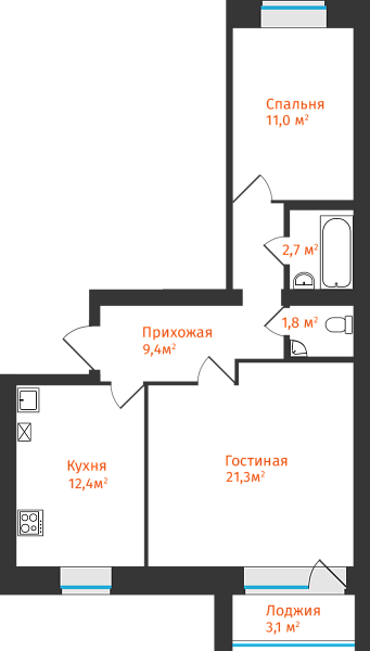 Новая 2-комнатная квартира в ЖК Норские резиденции на 2 этаже площадью 60.03 м² в 2 подъезде номер 24