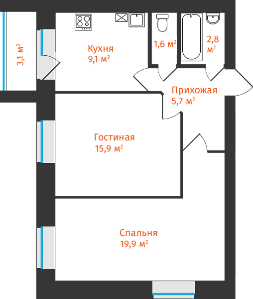 Новая 2-комнатная квартира в ЖК Норские резиденции на 4 этаже площадью 56.42 м² в 1 подъезде номер 14