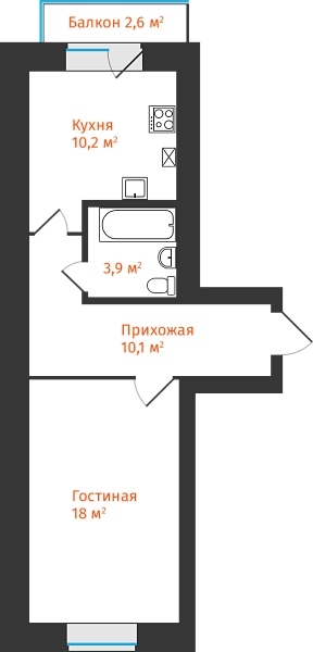 Новая 1-комнатная квартира в ЖК Норские резиденции на 1 этаже площадью 43.17 м² в 1 подъезде номер 2
