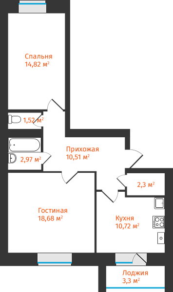 Новая 2-комнатная квартира в ЖК Норские резиденции на 4 этаже площадью 63.17 м² в 2 подъезде номер 33